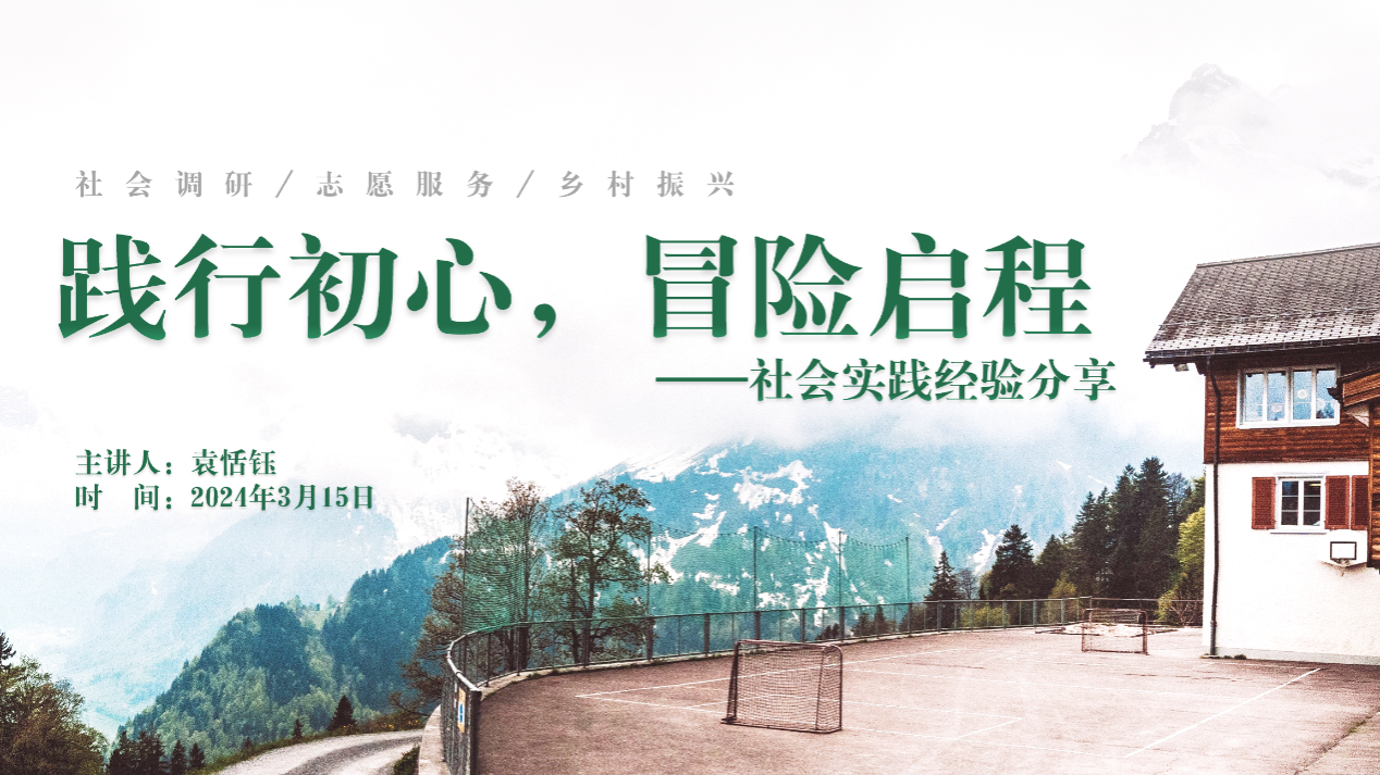 袁恬钰讲述了实践的定位、实践中如何去寻找选题、实践需要做的准备、实践成果的转化方法四个方面的内容。