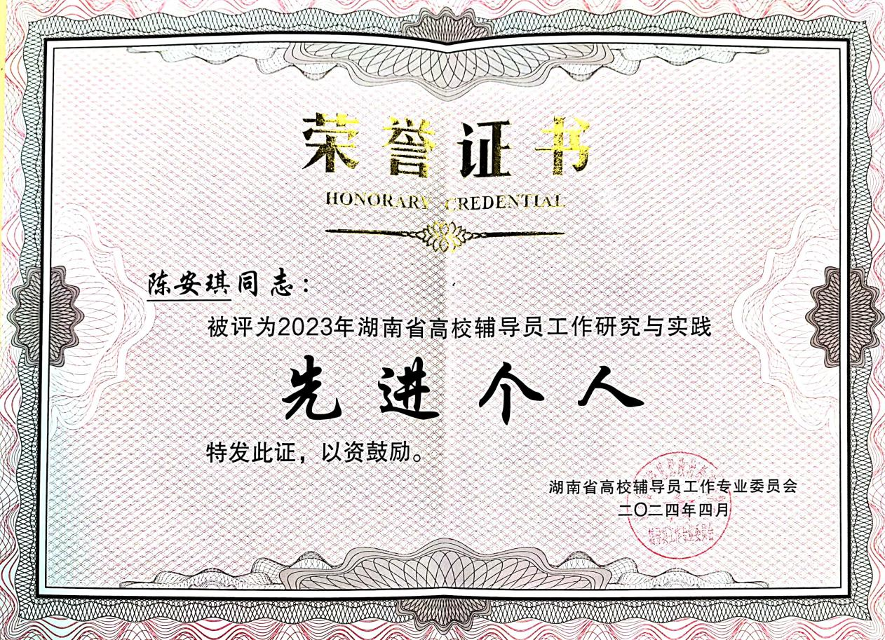 (通讯员 刘乐怡)2023年湖南省高校辅导员工作研究与实践先进单位、先进个人,员工工作研究与实践先进单位、先进个人,辅导员优秀论文和员工工作优秀育人案例评选结果近日揭晓,公司2020级辅导员陈安琪荣获“2023年湖南省高校辅导员工作研究与实践先进个人”称号,2022级辅导员王洋参与撰写的论文荣获2023年湖南省高校辅导员优秀论文。