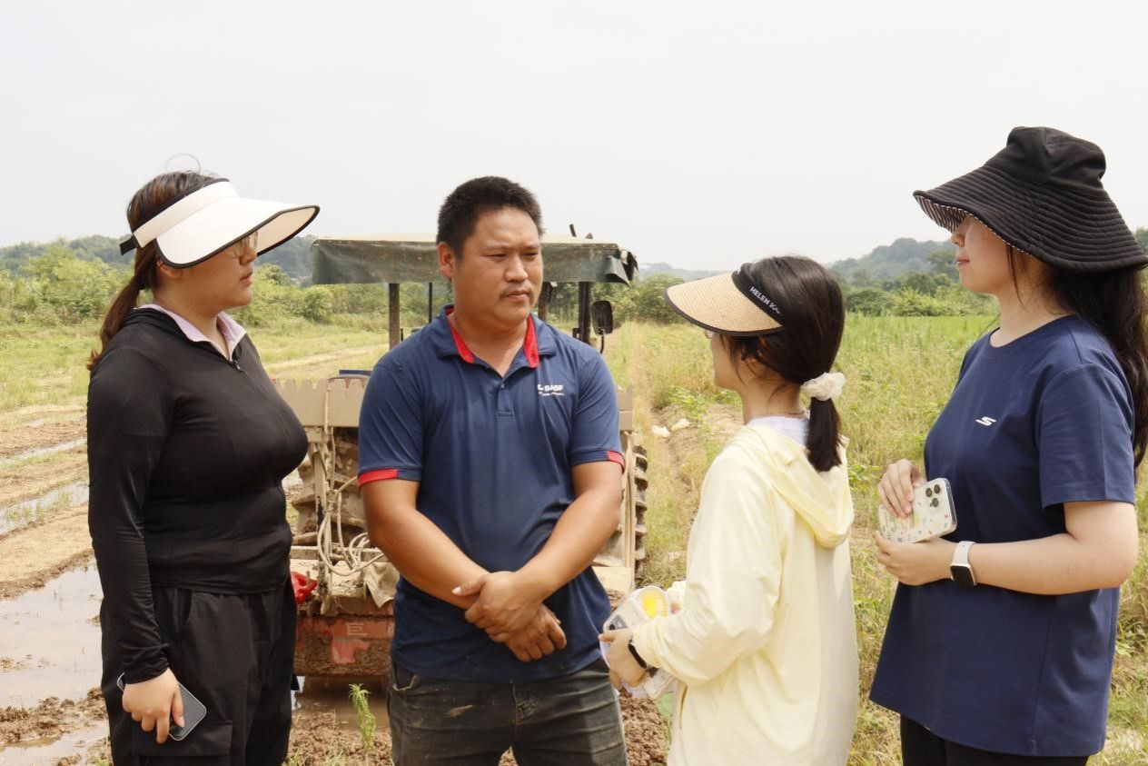 在白衣镇藠果种植基地,队员们对当地藠果种植大户齐绍鑫进行了访谈,了解白衣镇藠果产业的运作模式、规模与现存困难。齐绍鑫表示,白衣镇藠果目前已形成了较为完整的产业链,但很多农户难以掌握农产品的新媒体宣传与销售方法,导致藠果的新媒体发展内生动力不足。