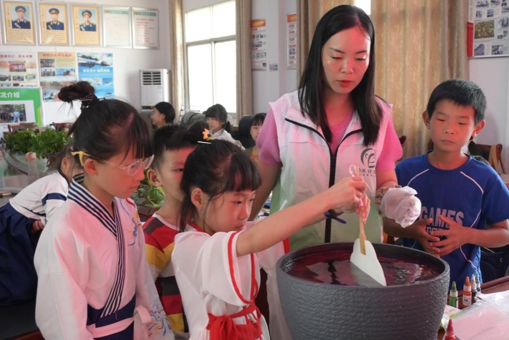 图源:通讯员陈嘉懿供稿 实践团成员带孩子制作漆扇