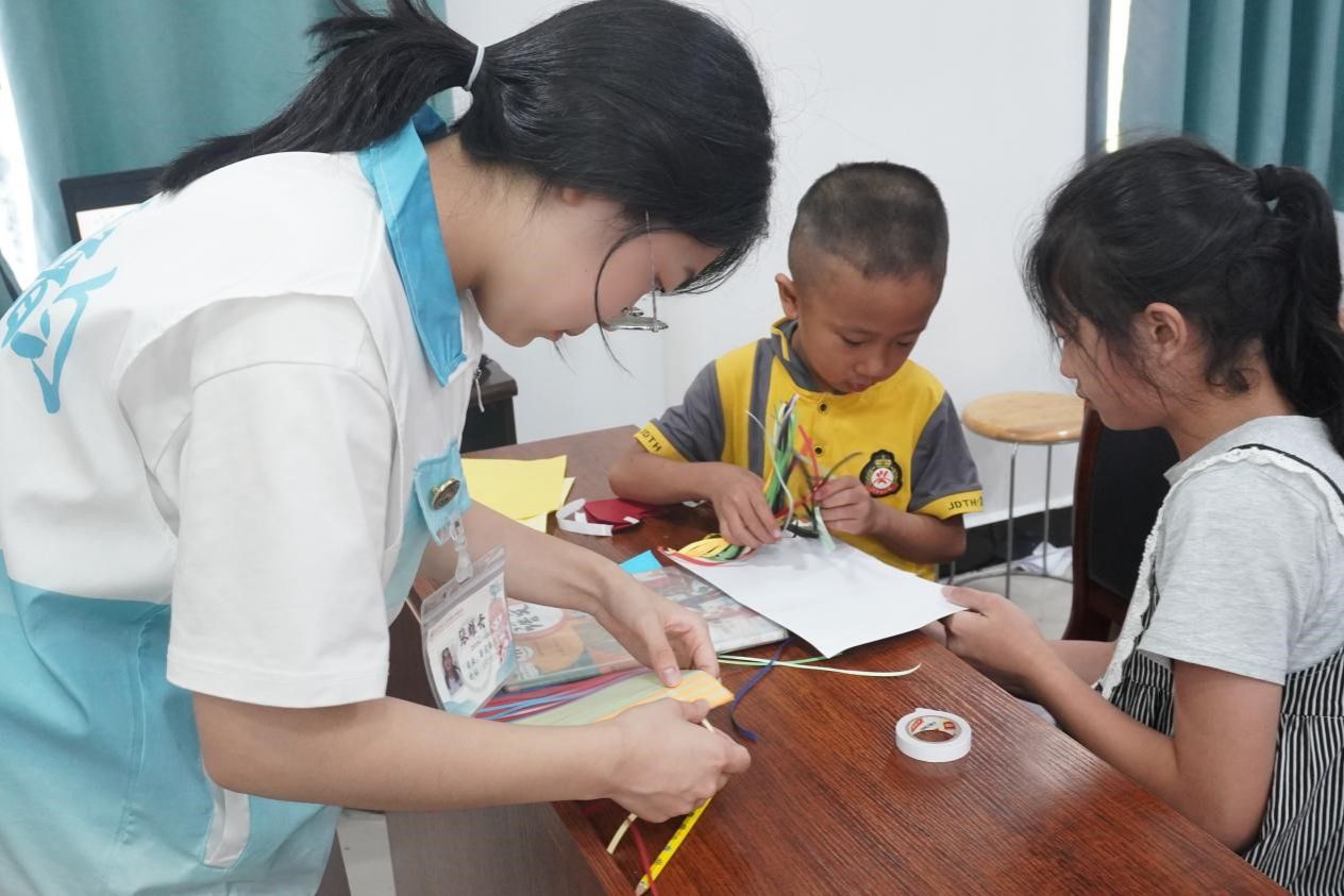 扇子以其独特的艺术形态,诠释着东方美学的神韵,演绎着中国传统文化的深厚内涵,是当今传播文化、展现风貌的重要载体。实践团将传统扇文化与现代美育相结合,将漆扇与手工编织扇的制作带到了课堂。