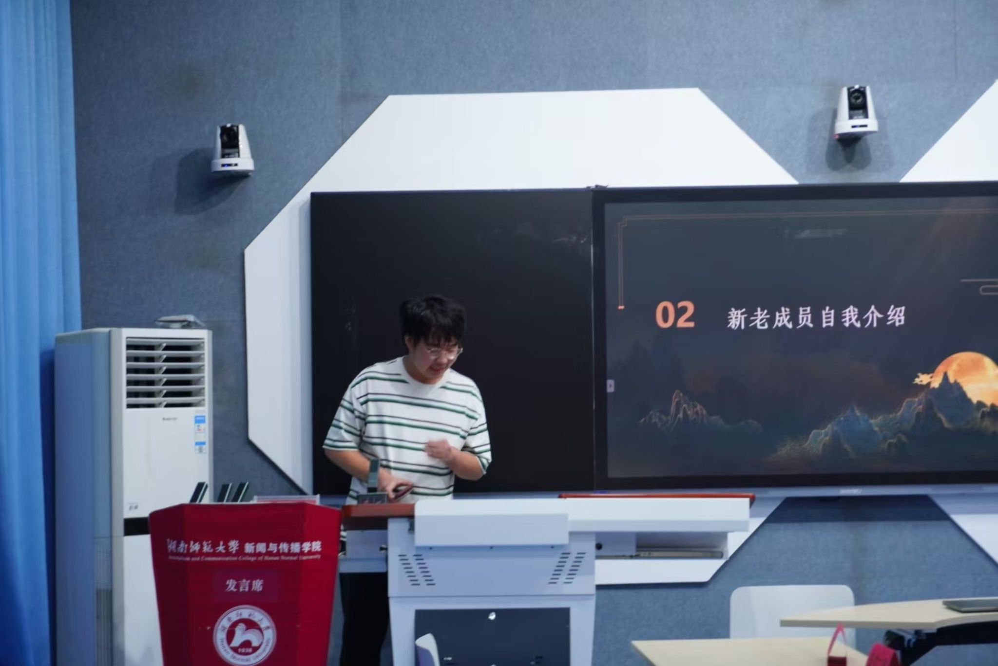在院辩论队24级新生见面会阶段,新传院辩论队现任队长组织辩论队新老成员进行了自我介绍,并讲解了辩论队的过往荣誉、组织构架、后续活动安排。在自我介绍环节,新老成员纷纷讲述自己与辩论的故事,交流自身有关辩论的感受,现场氛围良好。