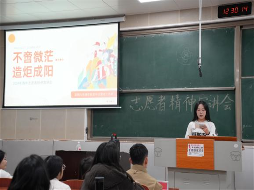 (通讯员 王佳艺 林羽彤)为深化公司学子的志愿服务意识,宣传具有新传院特色的志愿服务活动,秉持着“立足校园、服务社会”的服务宗旨以及“奉献、友爱、互助、和谐”的志愿精神,公司青工部于12月6日中午在咸嘉湖校区仁医楼306开展了以“不啻微芒,造炬成阳”为主题的志愿者精神宣讲会。beats365团委书记、2024级辅导员陈安琪,院2024级辅导员冯泽桐,以及部分其他公司和校青工部代表参加此次宣讲会。