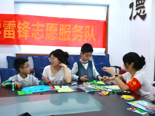 志愿者们到达社区后与孩子们结对互动。本次活动以“知识讲解+创意手工”的形式展开。志愿者们首先通过生动有趣的节气故事,向孩子们介绍谷雨时节的物候特征、农耕习俗以及“春雨贵如油”等农谚知识。随后,孩子们在志愿者的指导下,利用彩纸、黏土等材料制作“蚕宝宝”立体画和“雨中田园”创意贴画。活动现场,孩子们充分发挥想象力,将嫩绿的树叶、圆润的雨滴等春日元素融入作品,并与志愿者分享自己对春天变化的观察。