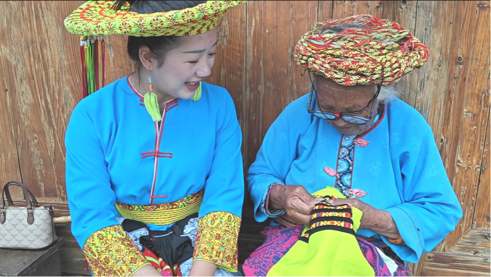 当天上午,实践团来到“千年瑶寨”崇木凼村,走进花瑶文化。崇木凼村党支部委员刘猫妹带领实践团走访参观时表示,当地挑花技艺代代相传,“村中老人从十岁开始绣,一直绣到现在,挑花从最初的谋生手段逐渐转变为一种文化传承”。据崇木凼村党支部书记郑小红介绍,花瑶文化在村民日常生活中占据重要地位,但在数字化冲击下,其传承面临困境。目前,崇木凼村正积极推进非遗文化产业化发展,通过政策扶持和产业引导,吸引更多年轻人返乡创业,助力文化传承、乡村振兴。