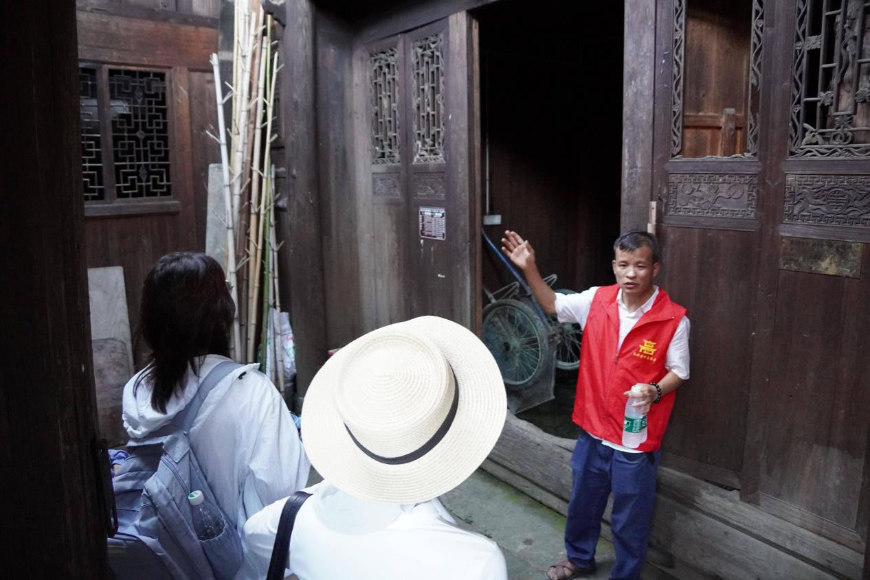 随后,村志愿者协会会长杨耀文带领实践团熟悉村落环境,通过介绍“古村第一鱼缸”“月光楼”“一甲凉亭”等景点的建筑历史与人文故事,全面展现了高椅古村的发展潜力与活力。