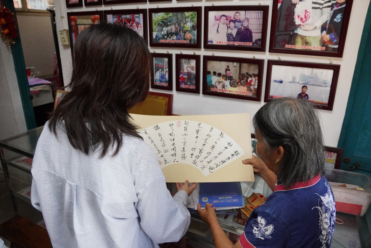 走进黄杏的家,映入眼帘的是满墙的照片和剪纸作品。老人指着墙上的照片,如数家珍地介绍着前来学艺的国内外访客。不仅有许多国内老员工曾来访,还有来自荷兰、意大利、阿拉伯等地的外国友人前来学习。这些照片记录了她从高椅古村走向世界的艺术足迹,也见证了中国传统文化在国际舞台上的绽放。