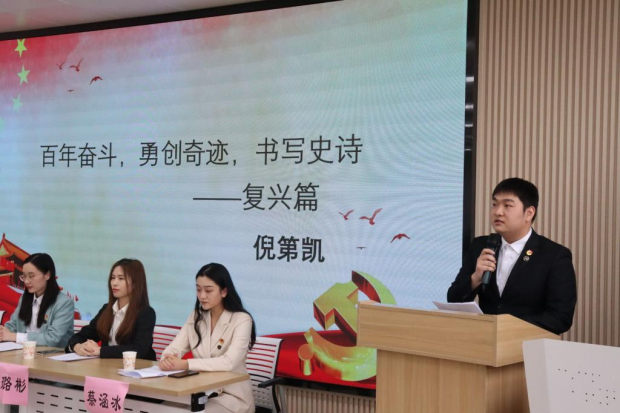 活动以“学百年党史,乘信仰之光”为主题,2019级播主班蔡涵冰、广告班王璐彬、编导班刘文心、18级播主班倪第凯四位主讲人分别从新民主主义革命时期、社会主义革命和建设时期、改革开放和社会主义现代化建设新时期、中国特色社会主义新时代这四个时期介绍了党的发展历程。其中蔡涵冰以李大钊、陈独秀“南陈北李,相约建党”的历史佳话为大家介绍了建党初期的艰辛与不易;王璐彬从中国共产党的“能”、“敢”、“韧”、“承”四个方面诉说了建国以来党带领全国各族人民开展宏图伟业的故事;刘文心结合长沙40年来的巨大发展分享了改革开放新时期的巨大成就;倪第凯以“百年奋斗,勇创奇迹,书写史诗”为题道来党在新时代的征程。