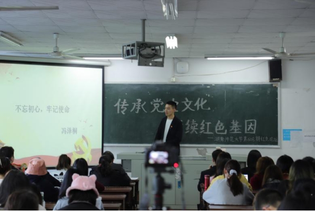活动以“传承党史文化,赓续红色基因”为主题,2018级新闻班陆卓、广告班管心如、播主班冯泽桐、常馨艺四位主讲人进行发言。他们分别从学党史的重要意义、如何学好党史、党史的简单摘要,结合实际生活去传承党史等方面进行讲述。其中冯泽桐以曾祖父讲的六个党史故事入手:革命家夏明翰的故事、对于党坚定执着的理想信念、“为人民服务”口号的提出、艰苦奋斗的精神、敢于创造的创新品质、伟大的抗疫精神;常馨艺结合长沙的红色革命精神,讲述自己对于长沙精神“吃的苦,霸得蛮,耐得烦”深刻理解。互动提问环节主讲人回答了同学们提出的问题,让同学们对于学党史、继承红色基因有了更深层的理解。