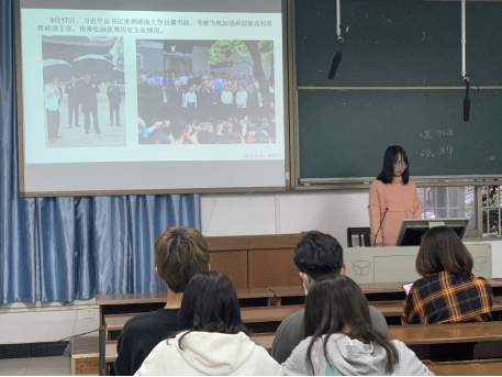活动最后是思想阐述阶段,安子怡同学、张硕同学、张星同学就如何深入贯彻学习习近平总书记考察湖南重要讲话精神与习近平新时代中国特色社会主义思想提出见解。