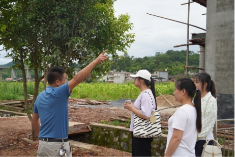 在此次调研活动中,队员分别走访长启村五处标志性地点,在李文飞的介绍下深入了解其建设过程、建筑用料、涉及的乡镇企业以及建设目标等关键信息。在此基础上,队员深入居民住宅区进行走访,了解基础建设的使用情况以及民众的认可程度。