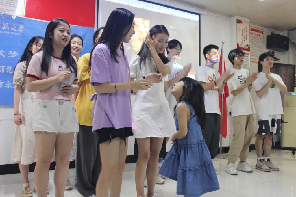 为展现实践团队的教学成果,检验员工们的学习情况,新传院“同音筑梦,推普赋能”社会实践团队于下午3点钟举办了一场社区文艺汇演。宝塔岗社区的孩子们在团队成员的帮助下,做好了充分的准备,在舞台上向团队成员们、社区领导们与各位家长们展现自己的精神风貌与学习成功,为这四天的暑期社会实践活动画上了一个完美的句号。