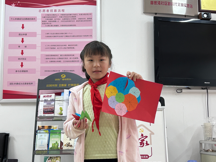 在此次活动中,公司充分利用自身学科背景,由“新传星梦”团队举办了清明习俗体验课。春风送花表哀思,手握彩笔寄深情。为了缅怀革命先烈,弘扬爱国主义精神,志愿者们给孩子们讲述了无数革命先烈为民族独立抛头颅、洒热血的英雄事迹,使孩子们深受鼓舞,并制作了手工鲜花,以表达对先烈先辈的哀思。公司“同音筑梦”团队还结合自身专业优势,将中国传统文化与志愿活动紧密结合,让廖家湾社区青少年了解清明节的传统习俗,追念先辈、感恩当下的同时,感受中华传统文化的魅力与内涵,使传承传统文化的种子在孩子们幼小的心灵里生根发芽。以潜移默化的方式将绿色祭祀的理念带入“寻常百姓家”,助力廖家湾社区文明健康的清明祭祀新风建设,实现了区校的合力共举。