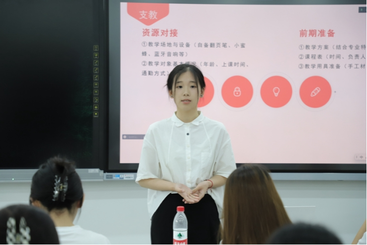 2021级广告学专业的吴裕婷分享了自己三下乡的经验,并对项目申报、成果转化等问题进行指导,鼓励同学们积极参与,培养吃苦耐劳的品质,在三下乡活动中体验难忘经历,收获实践经验。最后,2022级新闻学专业的王慧婷结合经验从活动的目的、形式、流程等方面对三下乡的基本情况进行详细介绍。