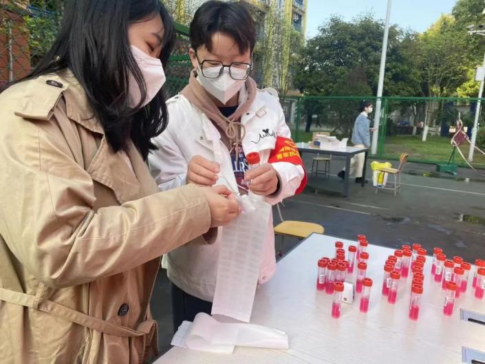 辅导员彭丹妮担任核酸检测志愿者