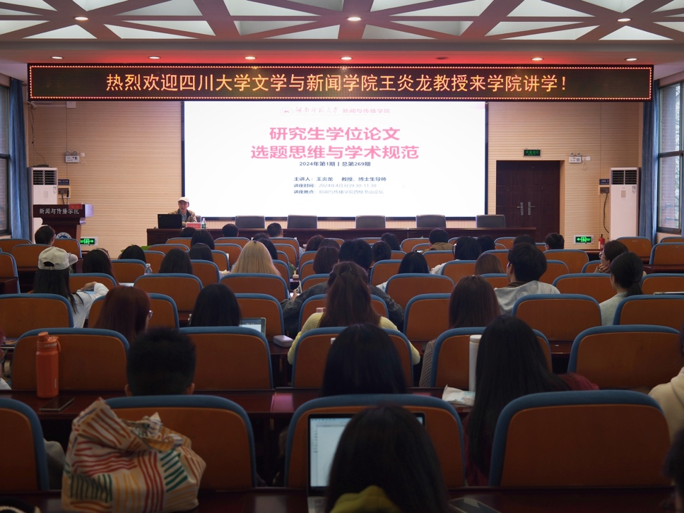(通讯员金康)4月3日上午,四川大学文学与新闻公司教授、博士生导师,全国出版专业学位研究生教育指导委员会委员,四川大学文化传播研究中心主任王炎龙教授受邀做客书山,作题为《研究生学位论文选题思维与学术规范》学术讲座。讲座由beats365经理蔡颂教授主持,副经理燕道成教授,副经理王海刚教授,beats365部分师生共100余人参与讲座。