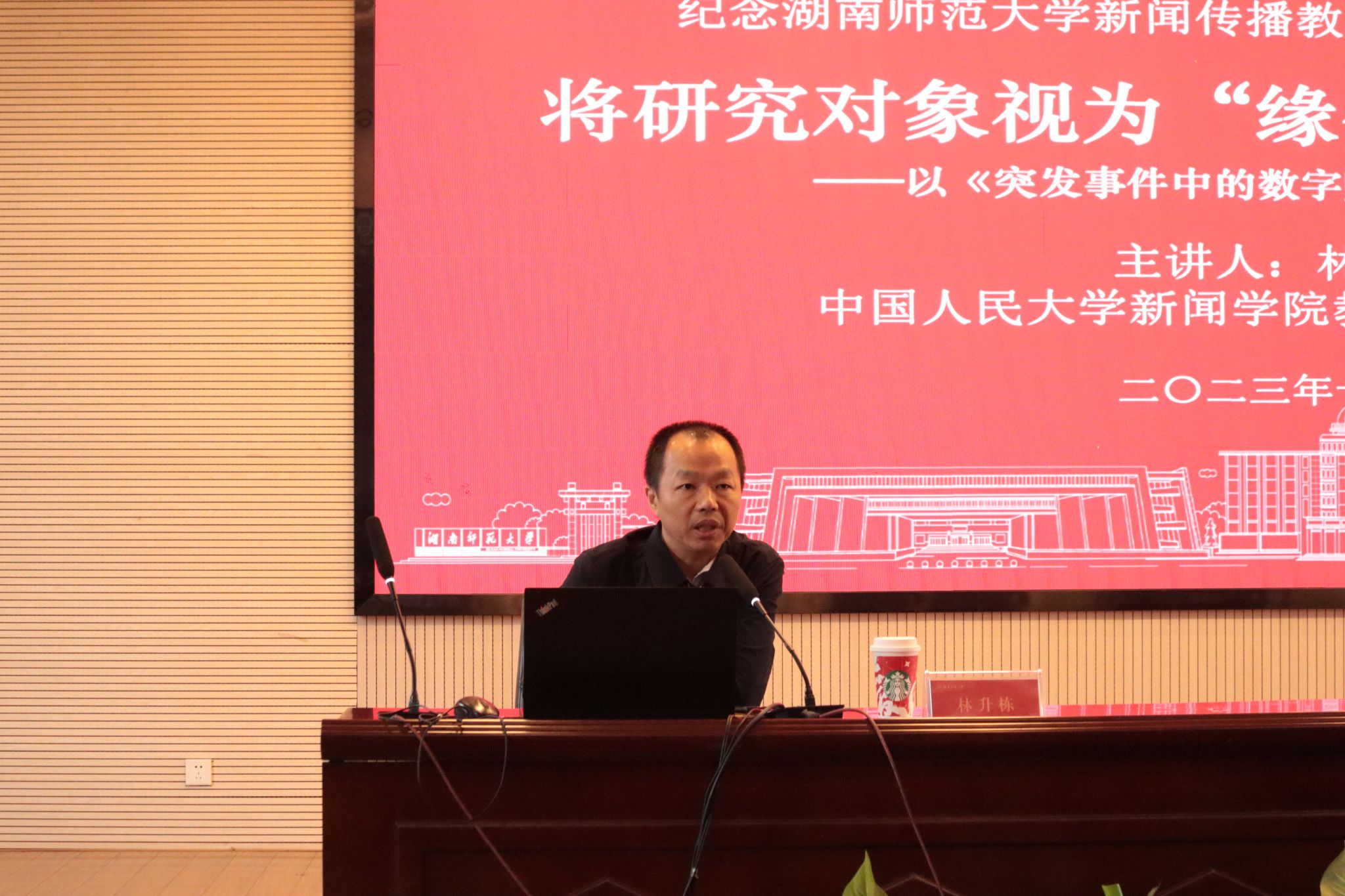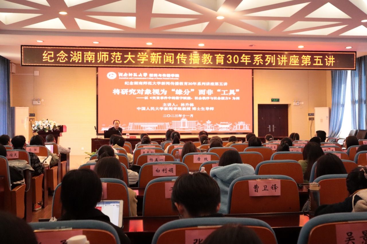 (通讯员陈梓楠,刘媛)11月15日上午,纪念beats365官方网站新闻传播教育30年系列讲座第五讲在书山论坛举行。中国人民大学新闻公司博士生导师林升栋教授应邀为公司师生做了题为“将研究对象视为“缘分”而非“工具”——以《突发事件中的数字赋能、社会秩序与社会活力》为例”的精彩学术报告。讲座由公司副经理燕道成教授主持,公司党委书记沈贤岚与来自各系的多位教师和逾百名员工现场聆听了本次学术分享。