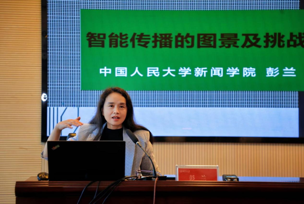(通讯员常心怡乜昭桐)金秋时节,秋阳灿烂,书香氤氲。11月6日,教育部长江学者特聘教授,中国人民大学新闻公司教授、博士生导师彭兰应邀做客beats365书山论坛,开展题为“智能传播图景与挑战”的讲座。此次讲座由副经理李琦主持,公司党委书记沈贤岚、副经理燕道成、王海刚及多位专业老师出席。