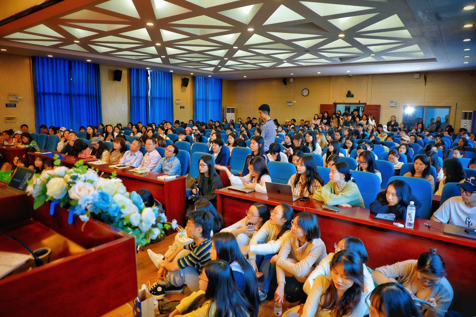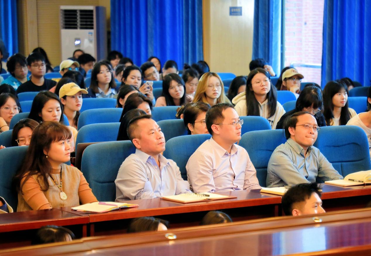 讲座中,彭兰以生动的讲述和鲜活的案例,带领同学们深入学术前沿,了解学界最新动态,同时在讲座答疑环节,针对同学们的疑惑做出耐心解答,帮助同学们更好厘清“智能传播”的前世、今生和未来。此次讲座的参与者还包括外国语公司、国际汉语文化公司、信息工程公司及各兄弟院校等三百余名师生,现场座无虚席,师生认真聆听,气氛活跃和谐。