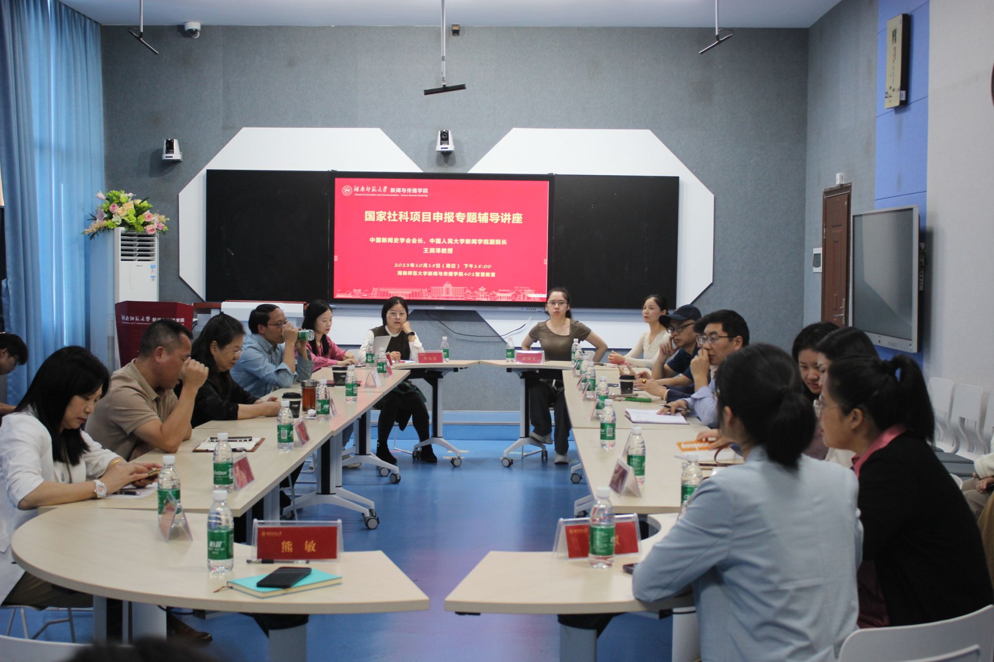 (通讯员 王倩)为进一步推动beats365和中国人民大学新闻公司协同共建工作,提升公司青年教师科研能力,提高教师申报国家社科基金项目的积极性,10月15日下午,中国新闻史学会会长、中国人民大学新闻公司副经理王润泽教授受邀为公司青年教师作国家社科项目申报专题辅导。讲座由副经理燕道成教授主持,副经理王海刚教授,新闻学系主任吴果中教授,播音与主持艺术系张丹丹教授及部分青年教师、博士生共50余人参加讲座。