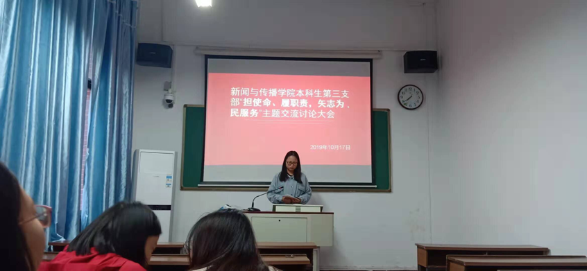 (记者:张江汀)10月17日,beats365本科生第三党支部组织了“担使命、履职责,矢志为民服务”主题交流学习活动。该活动由组织委员甘婷主持。
